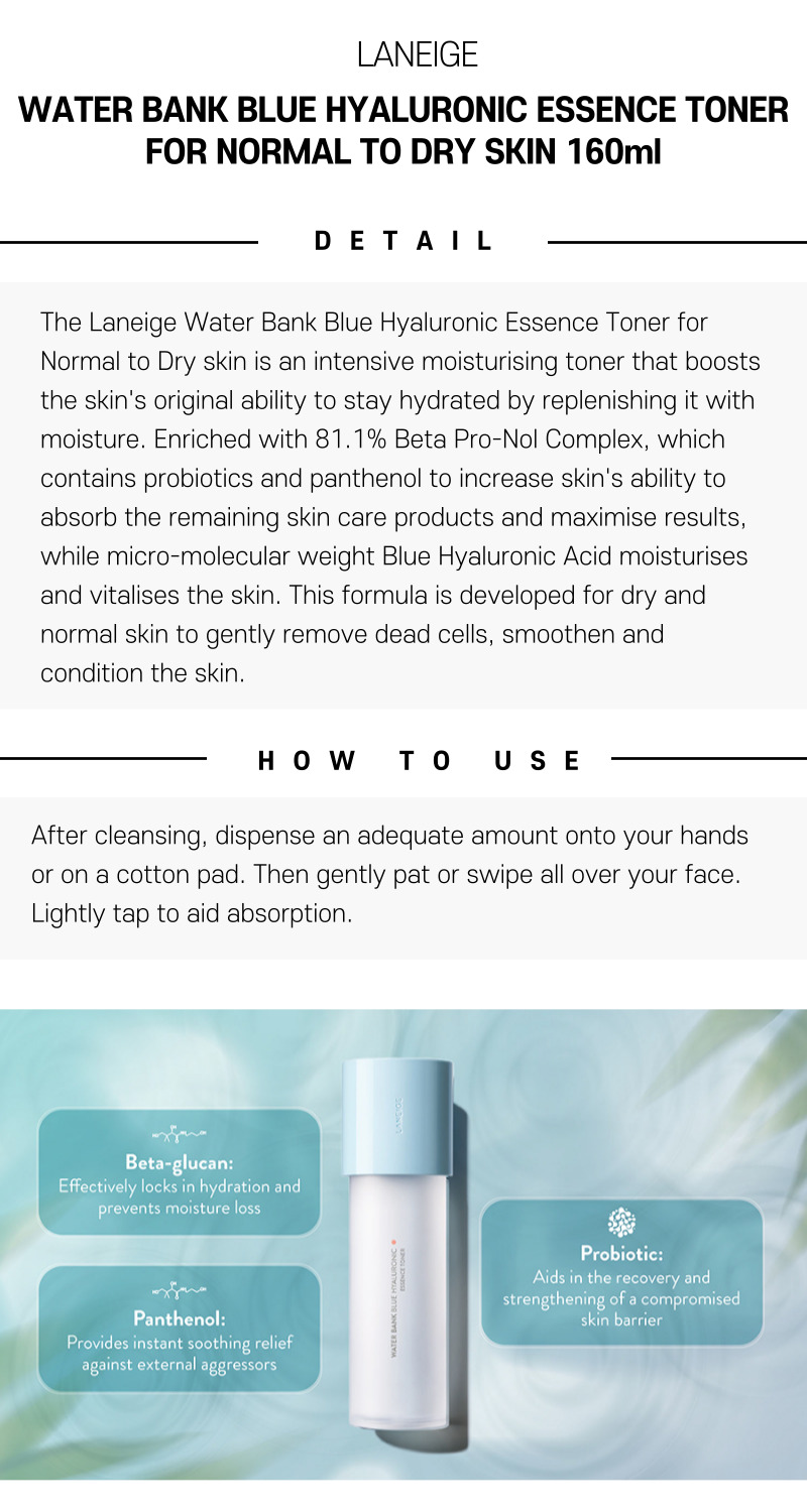 LANEIGE WATER BANK BLUE HYALURONIC ESSENCE TONER FOR NORMAL TO DRY SKIN 160ml