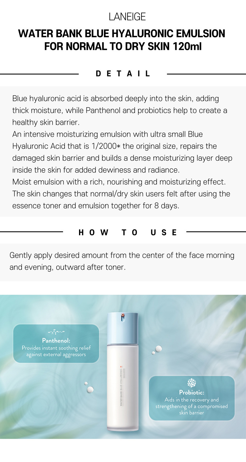 LANEIGE WATER BANK BLUE HYALURONIC EMULSION FOR NORMAL TO DRY SKIN 120ml