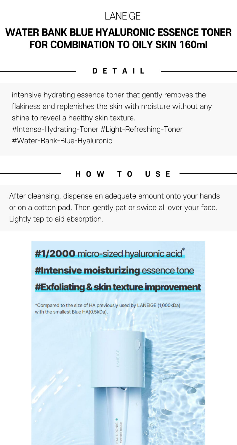 LANEIGE WATER BANK BLUE HYALURONIC ESSENCE TONER FOR COMBINATION TO OILY SKIN 160ml