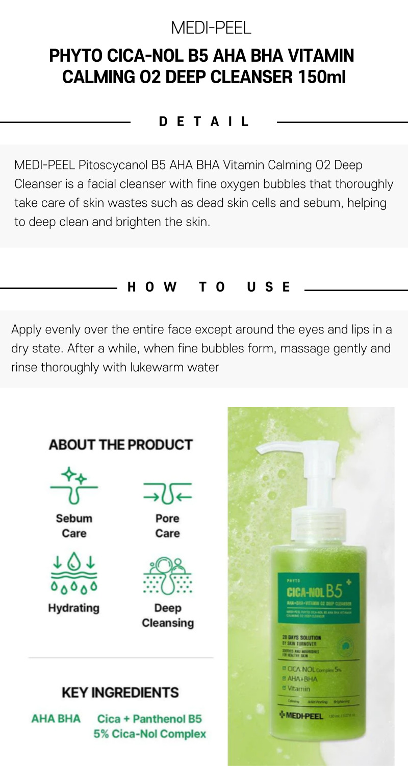 Medi-Peel Phyto Cica-Nol B5 Aha Bha Vitamin Calming O2 Deep Cleanser 150ml