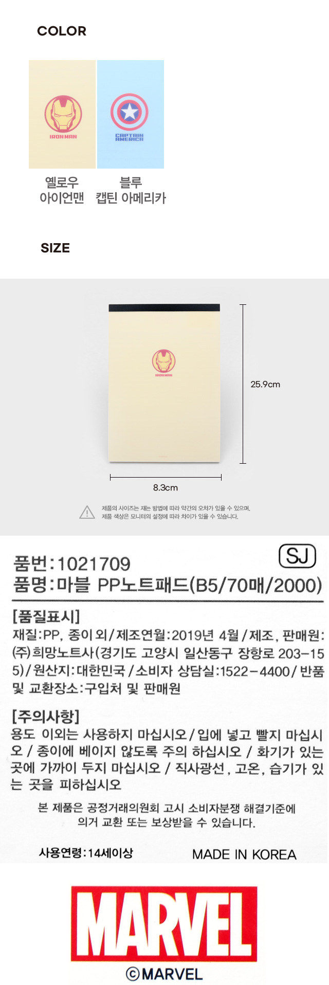 DAISO Marvel PP Notepad (B5/70 sheets)