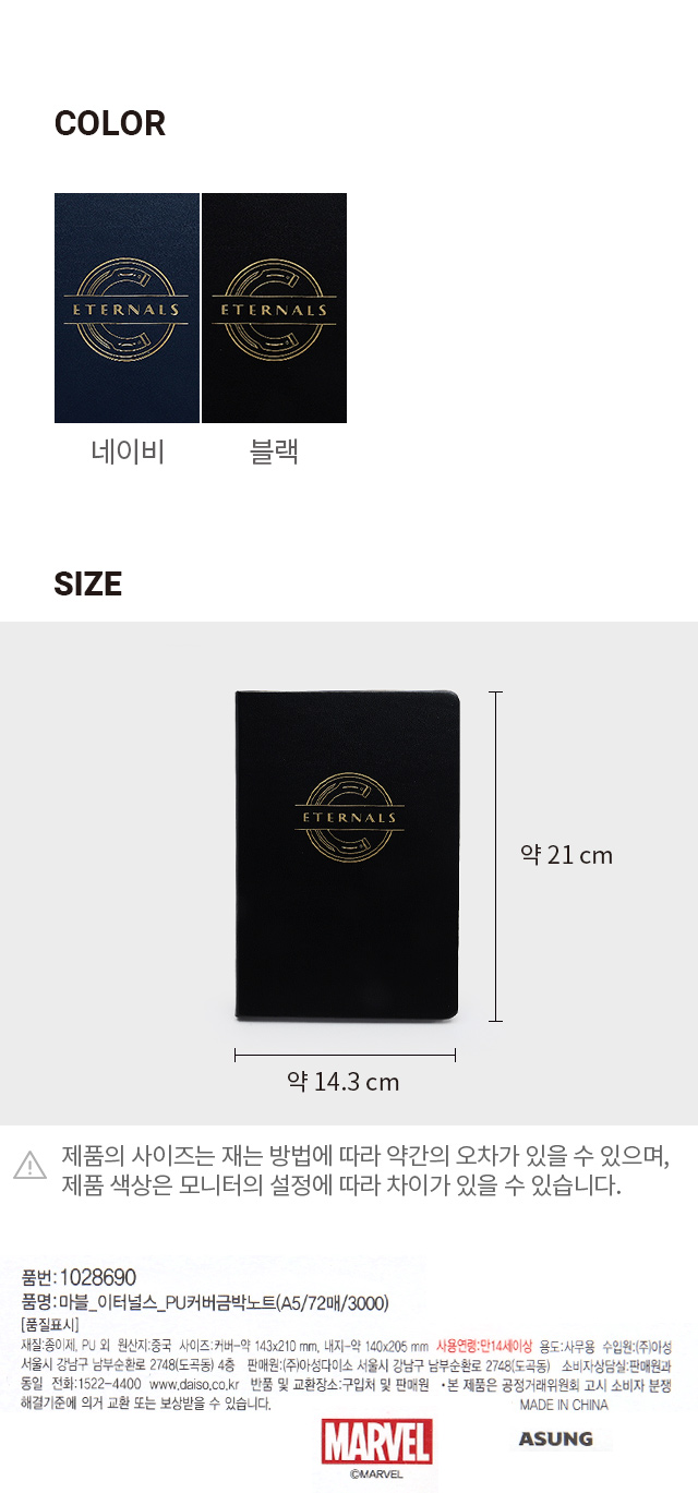 DAISO Marvel_Eternals_PU Cover Gold Foil Notebook (A5/72 sheets)