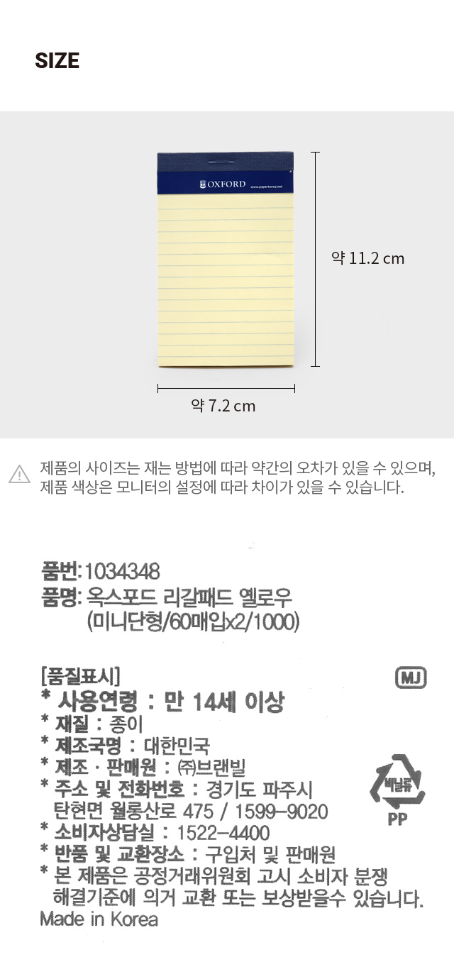 DAISO Oxford Legal Pad Yellow (Mini Short/60 Sheets*2)