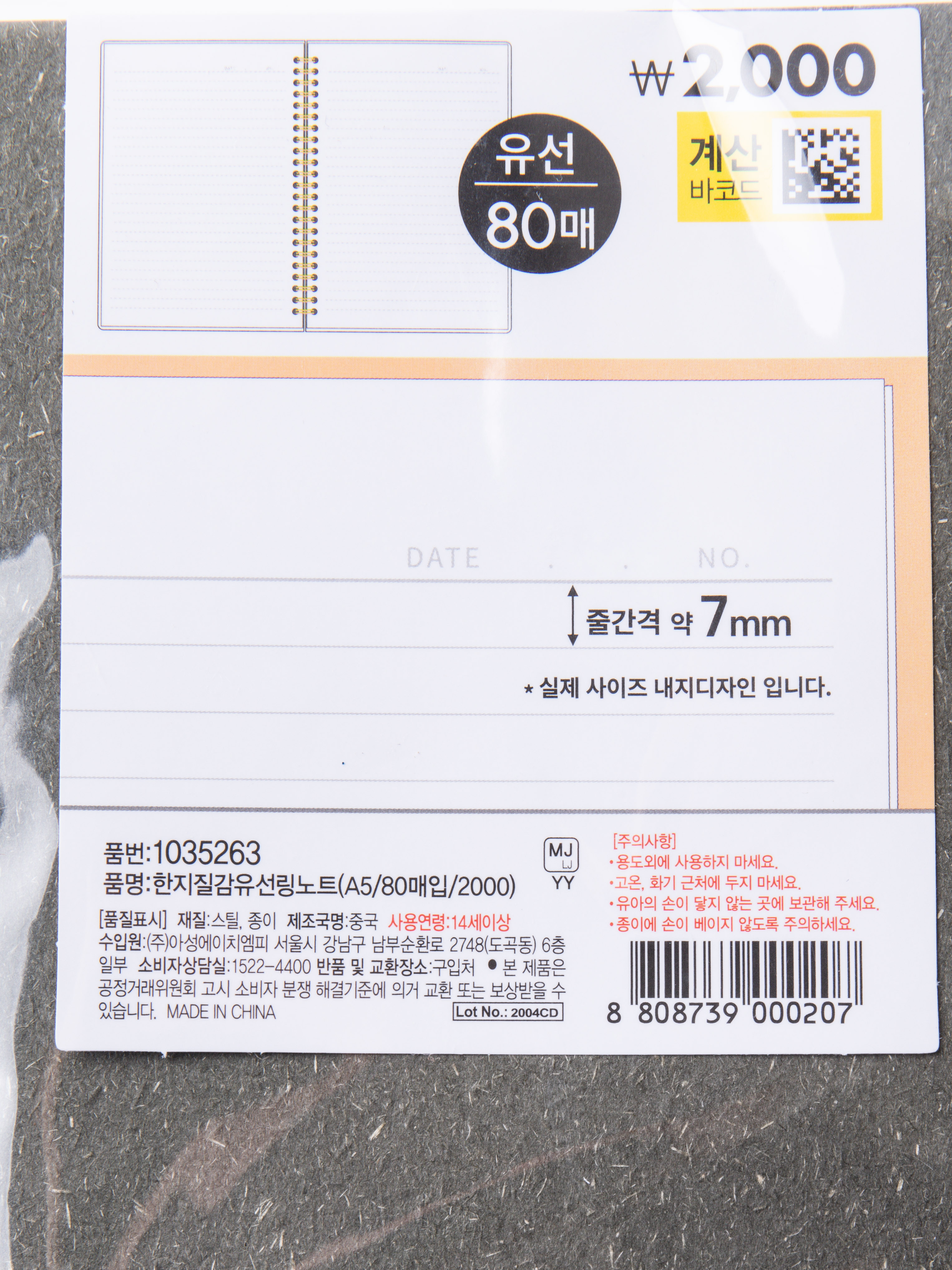 DAISO Hanji texture wired ring notebook (A5/80 sheets)