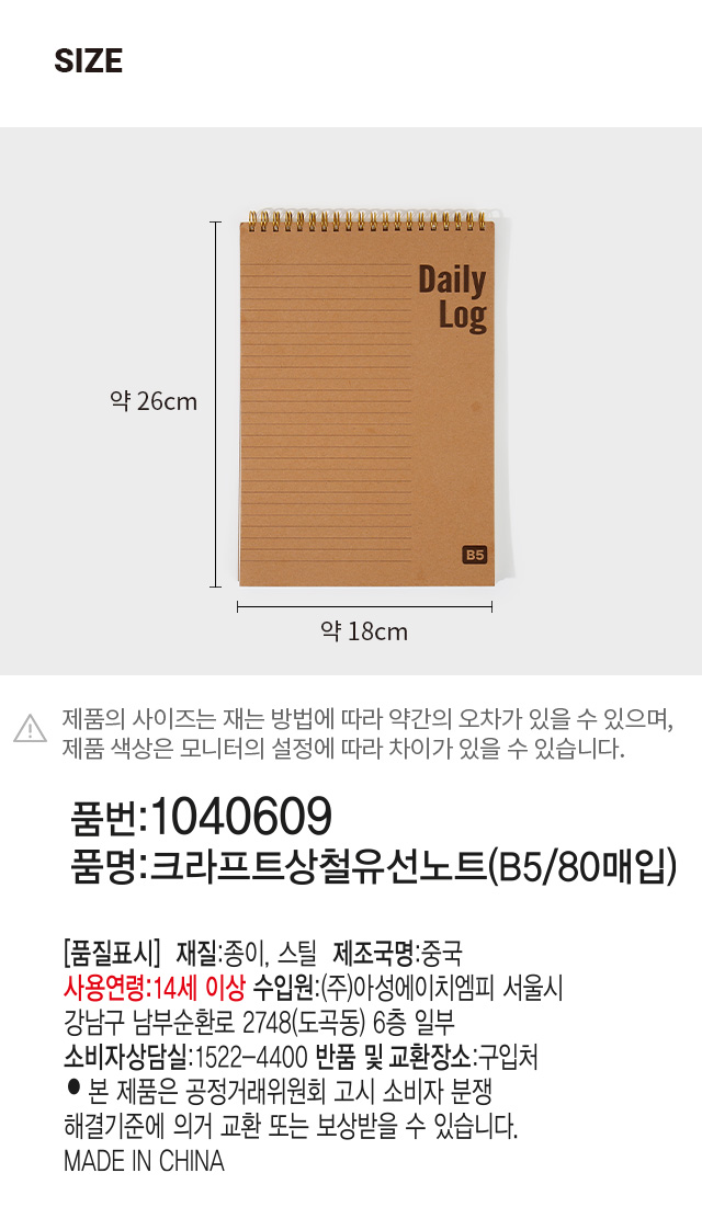 DAISO Kraft steel wire notebook (B5/80 sheets)