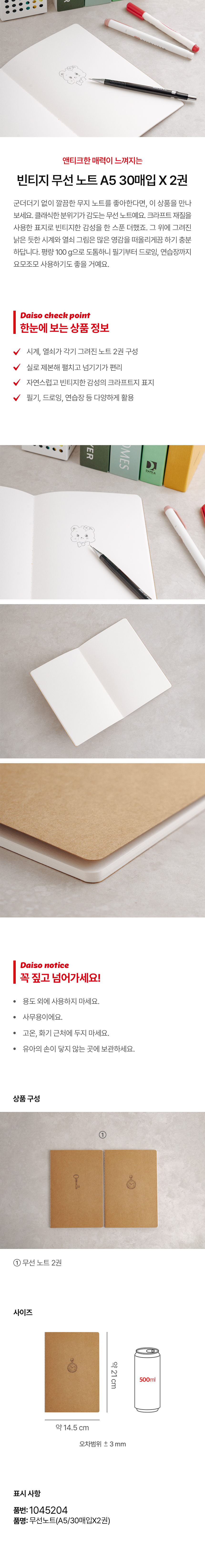 DAISO Wireless notebook (A5/30 sheets*2 volumes)