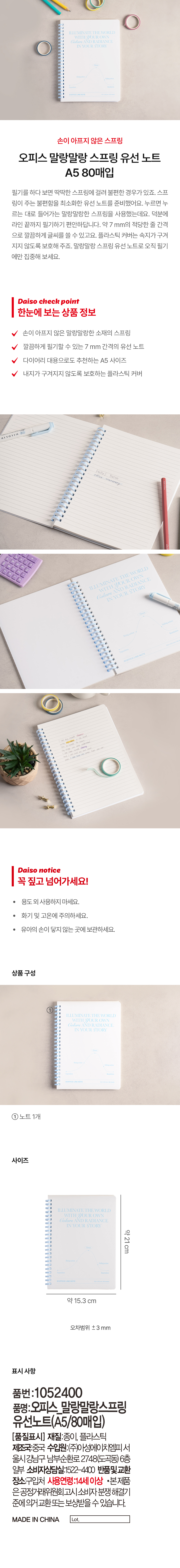 DAISO Office_Soft Spring Wired Notepad (A5/80 sheets)