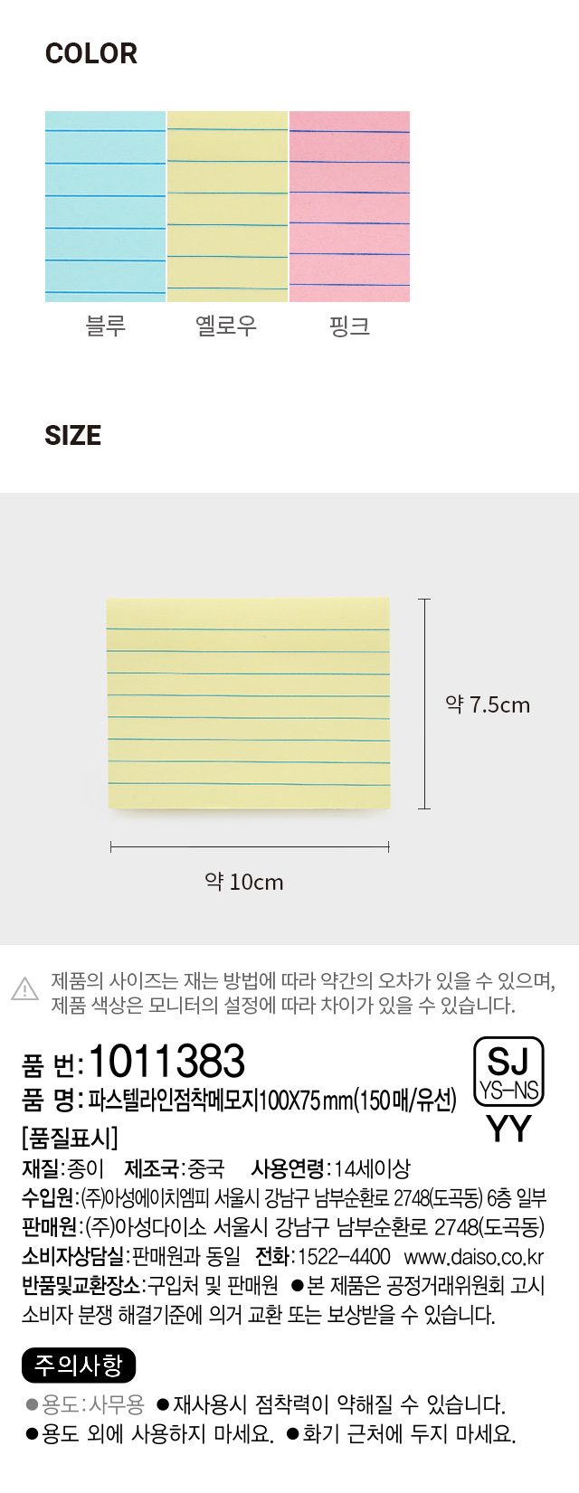 DAISO pastel line sticky note 100*75mm (150 sheets/wired)
