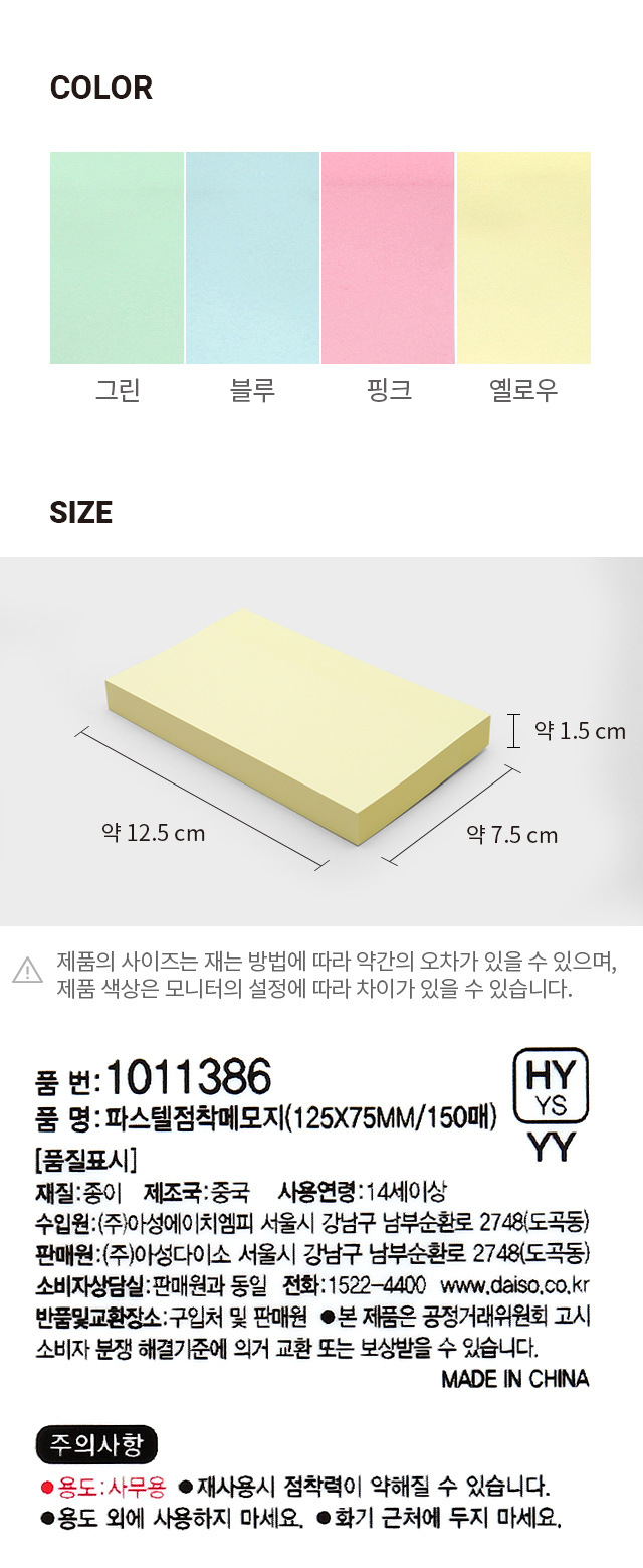 DAISO pastel sticky note (125*75mm/150 sheets)