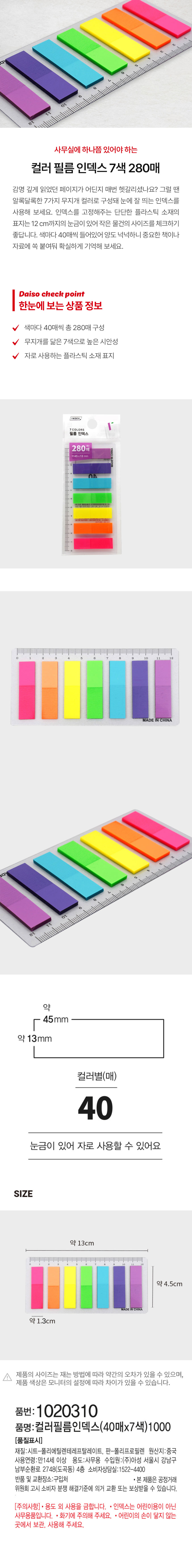 DAISO Color film index (40 sheets * 7 colors)