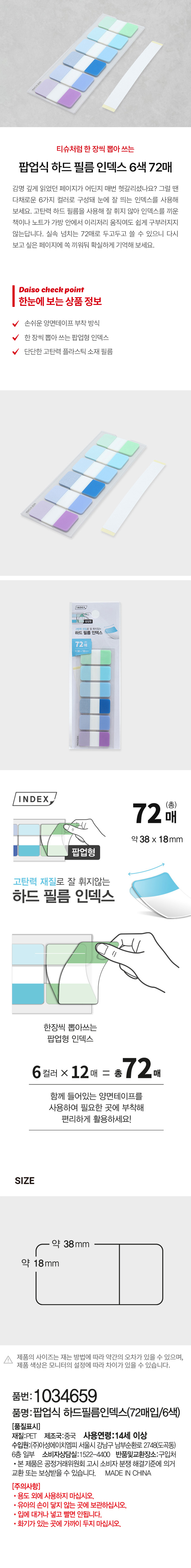 DAISO Pop-up hard film index (72 sheets/6 colors)