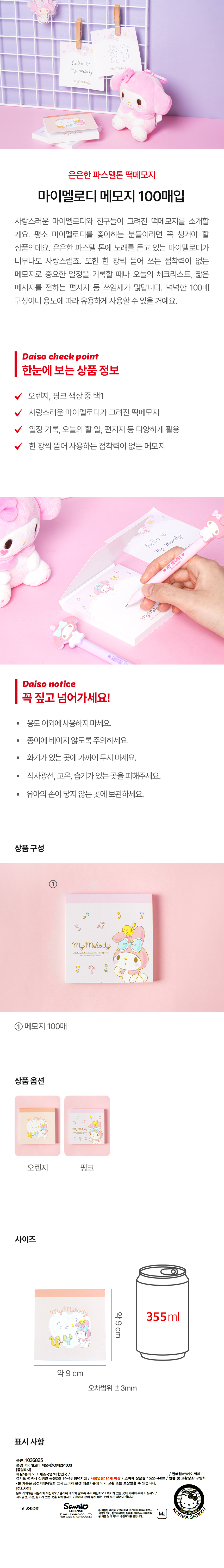 DAISO My Melody Memo (100 sheets)