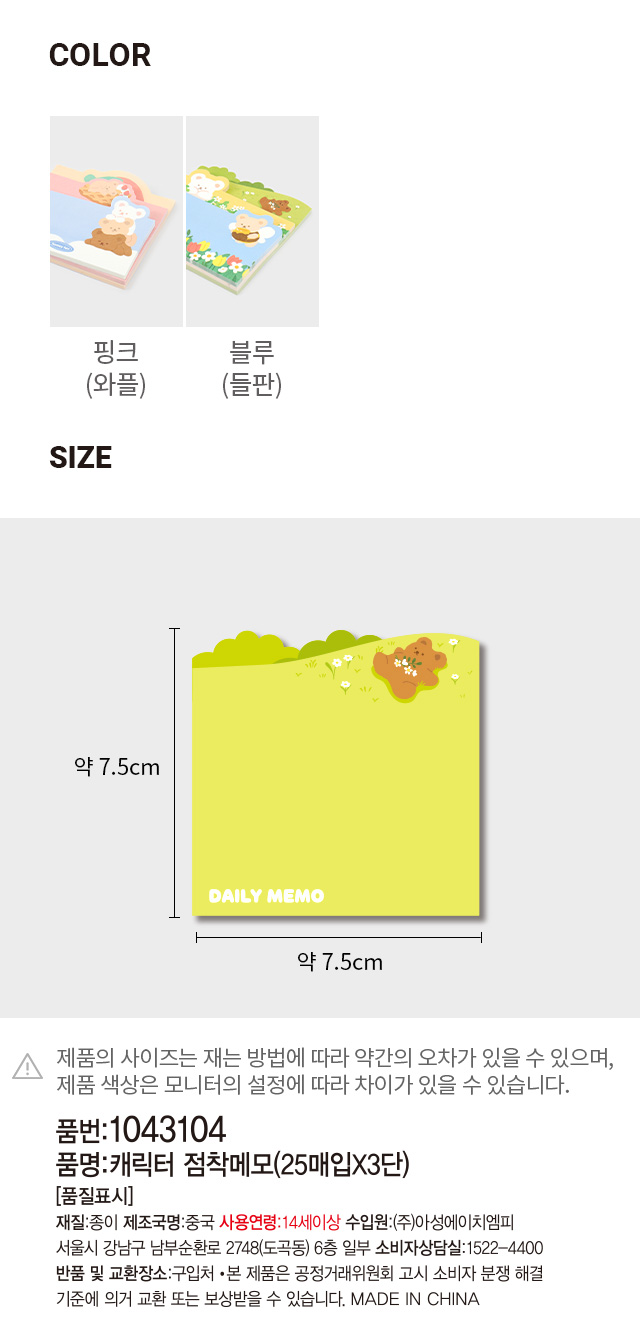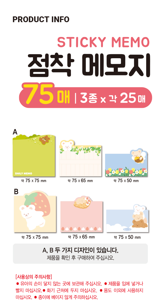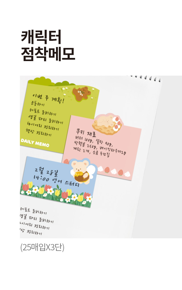 DAISO Character sticky note (25 sheets x 3 rows)