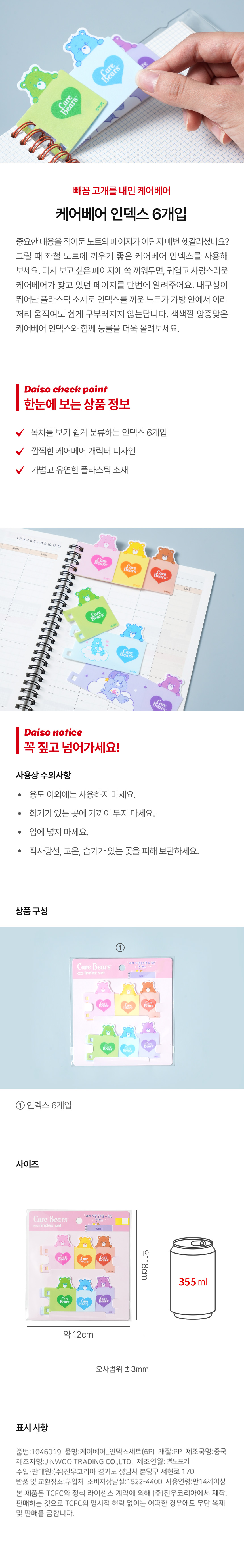 DAISO Care Bear Index Set (6P)