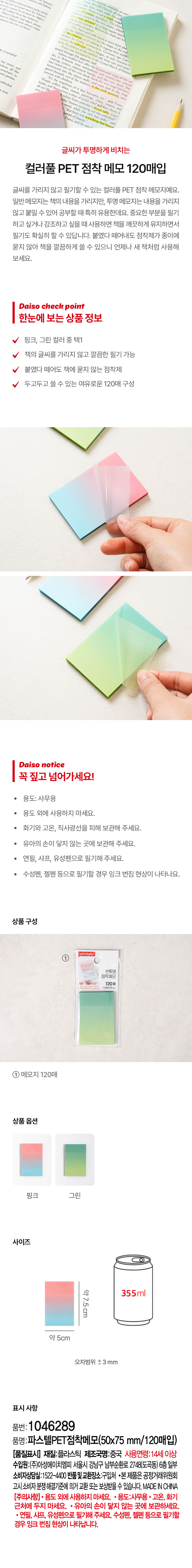 DAISO Colorful PET sticky notes (50*75mm/120 sheets)