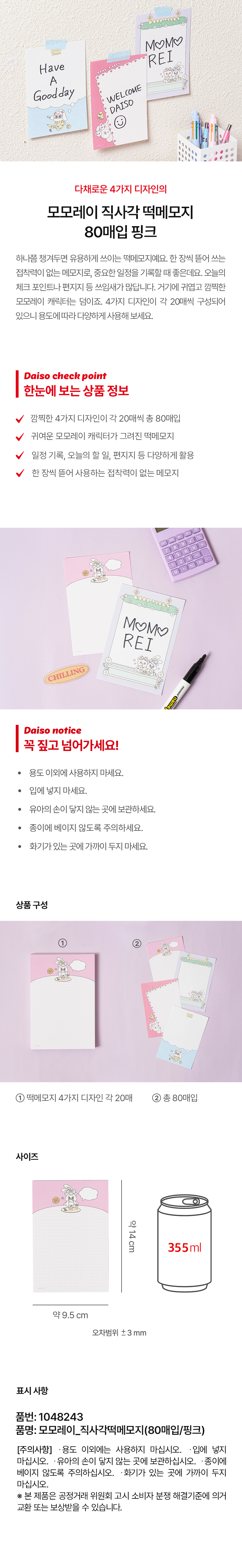 DAISO Momorei Rectangular Memo Pad (80 sheets/Pink)