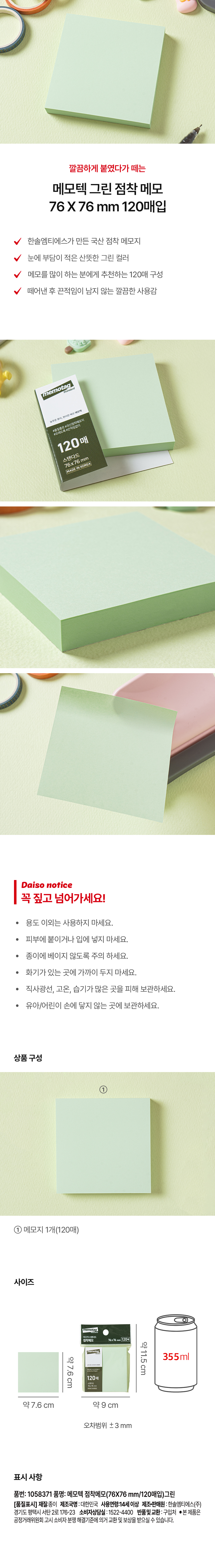 DAISO Memotech sticky note (76*76mm/120 sheets)Green