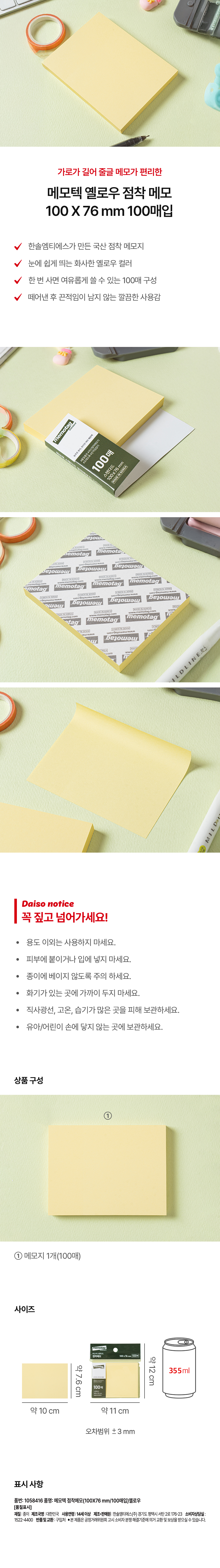 DAISO Memotech sticky note (100*76mm/100 sheets)Yellow