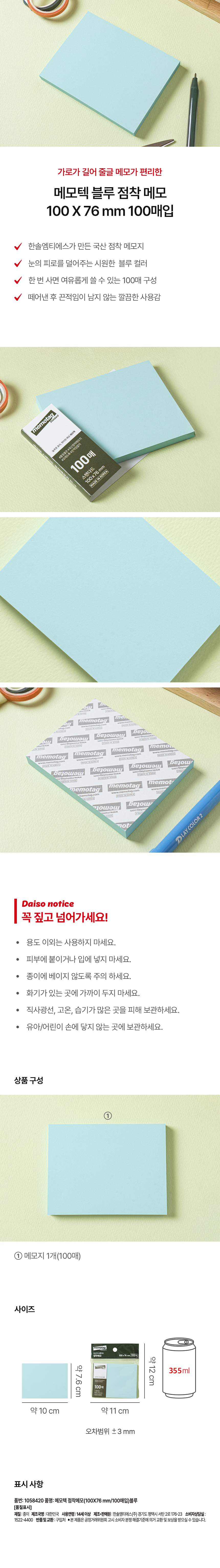 DAISO Memotech sticky note (100*76mm/100 sheets) Blue