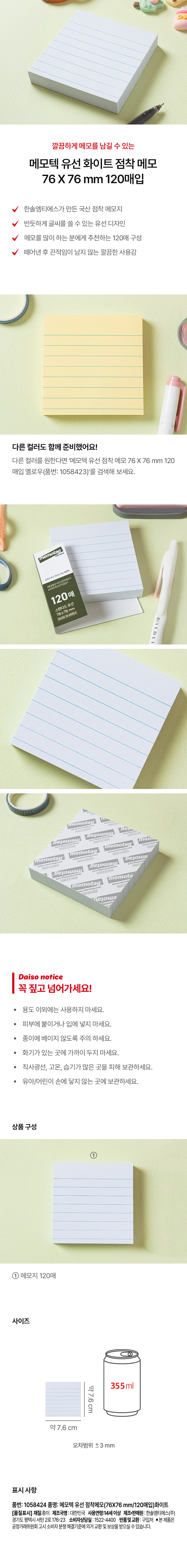 DAISO Memotech Wired Sticky Note (76*76mm/120 sheets)White