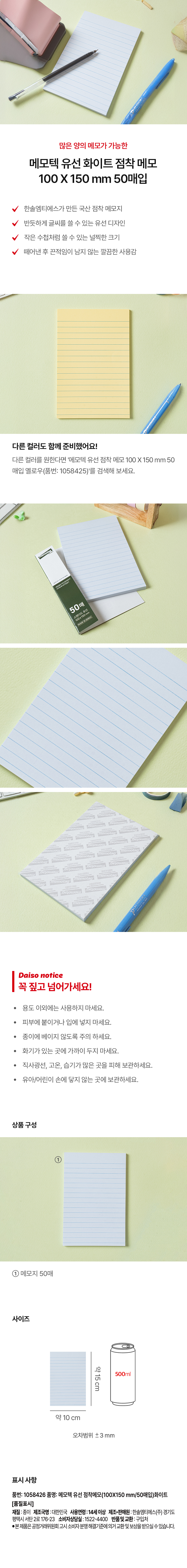 DAISO Memotech Wired Sticky Note (100*150mm/50 sheets)White