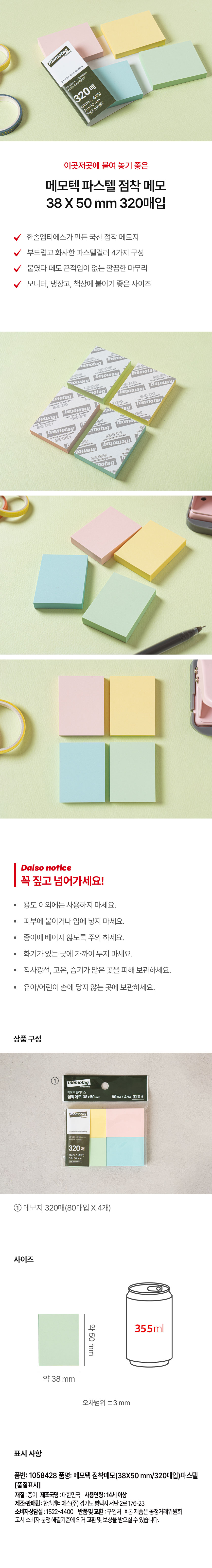 DAISO Memotech sticky note (38*50mm/320 sheets) pastel