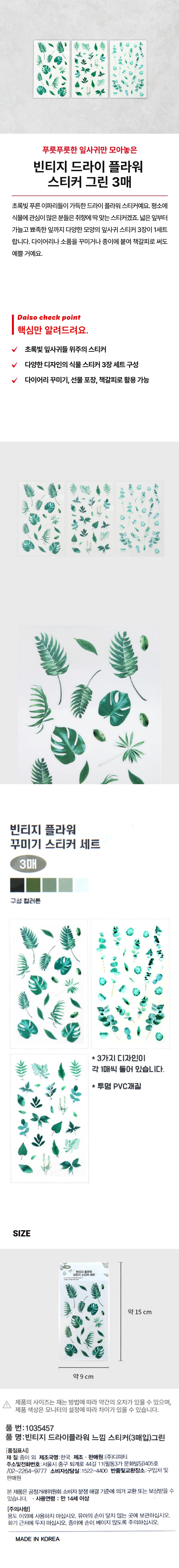 DAISO Vintage Dry Flower Feel Sticker (3 sheets)Green