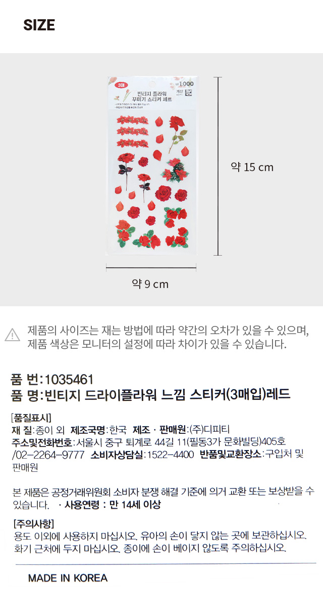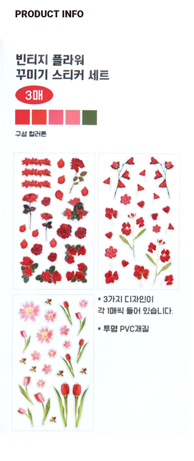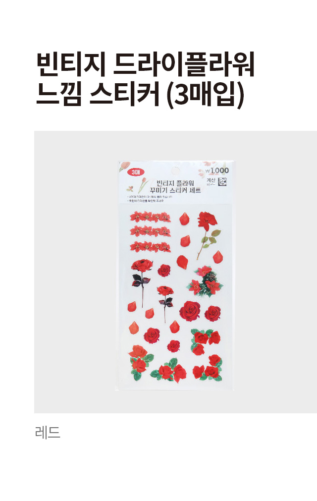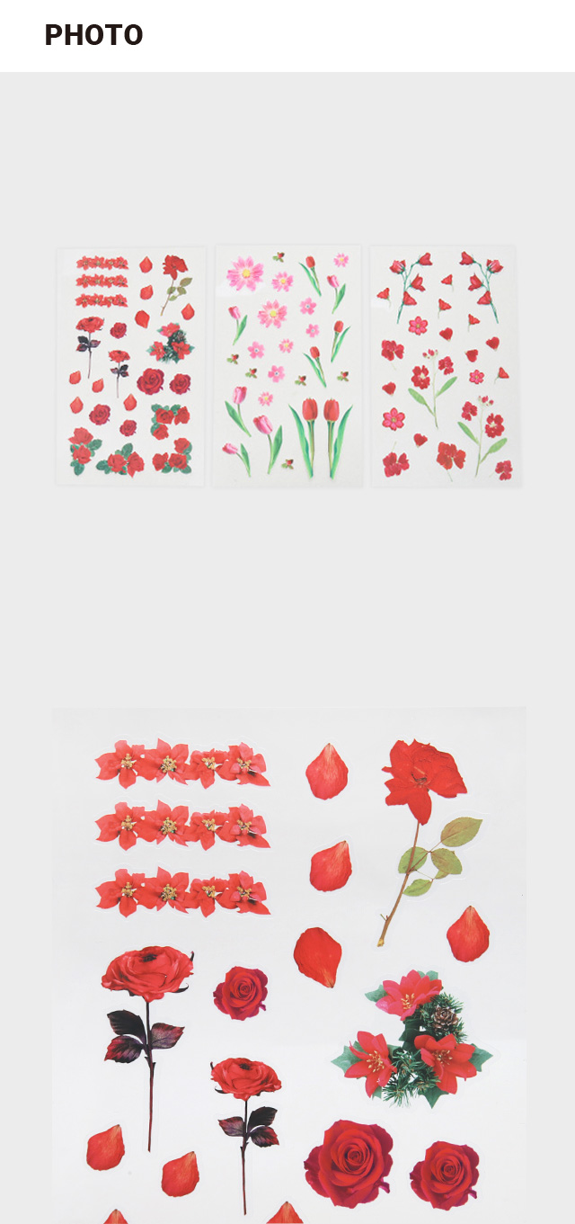 DAISO Vintage Dry Flower Feel Sticker (3 sheets) Red