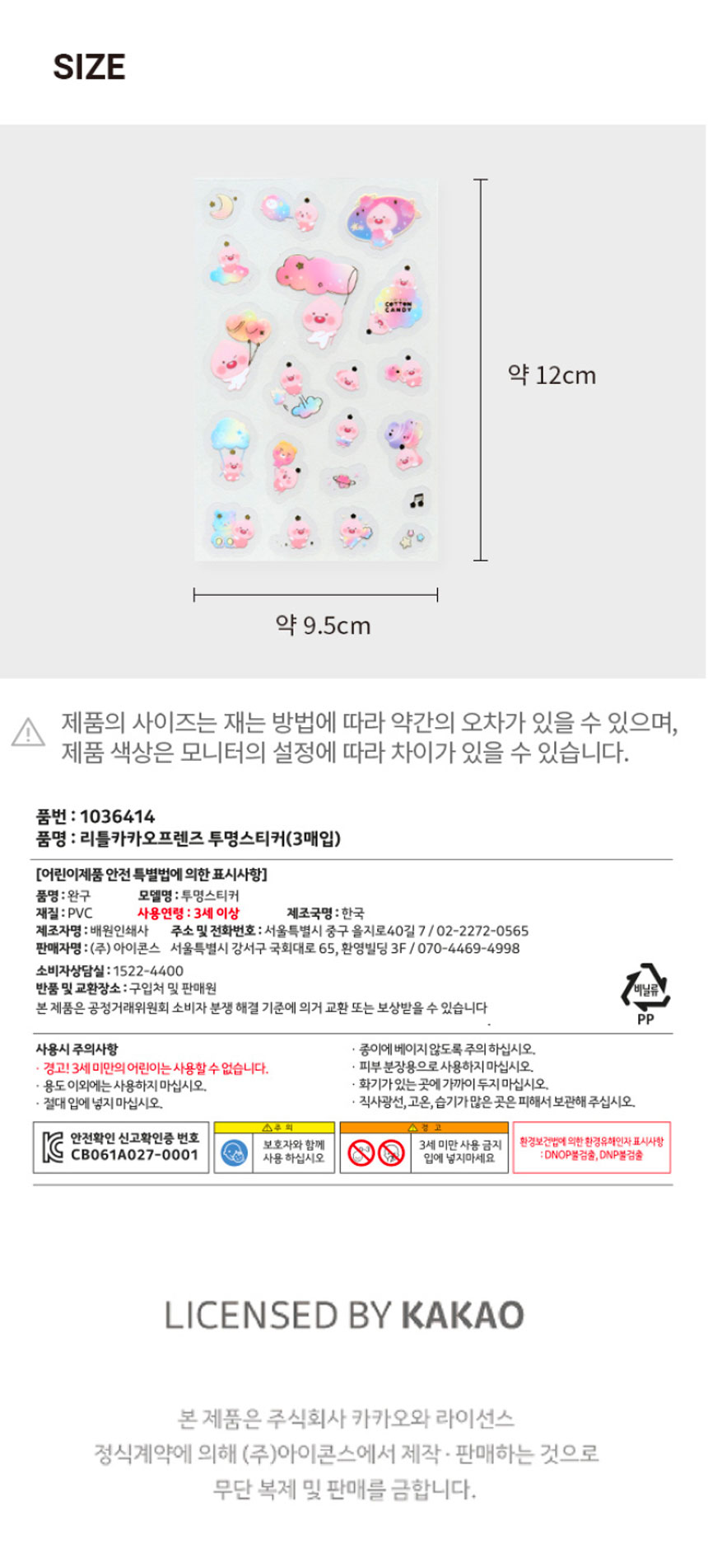 DAISO Little Kakao Friends Transparent Sticker (3 sheets)