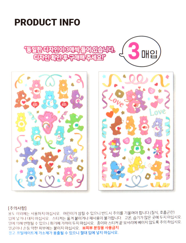 DAISO Care Bears line Park stickers (3 sheets)