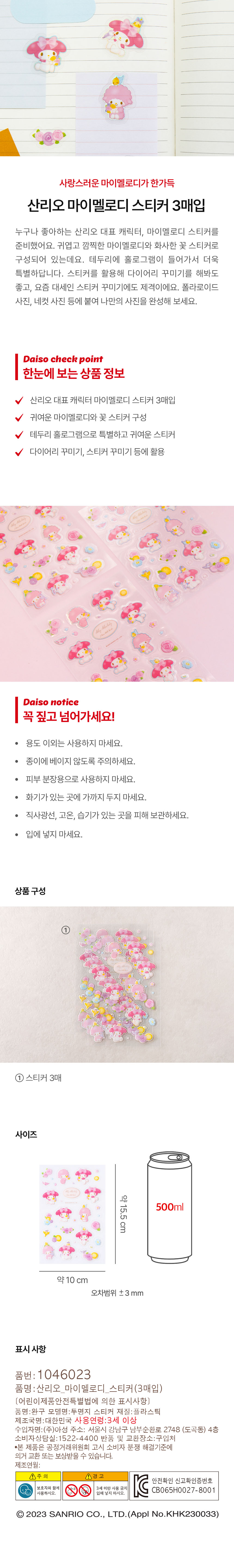 DAISO Sanrio_My Melody_PVC Sticker (3 sheets)