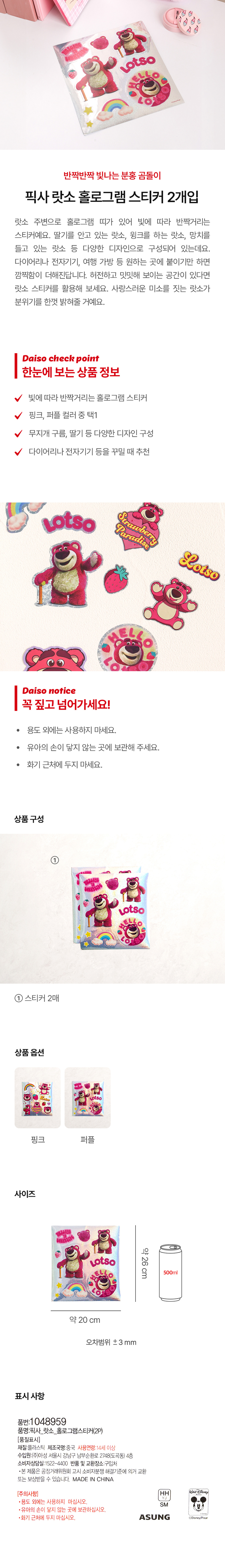 DAISO Pixar_Lotso_Hologram Sticker (2P)