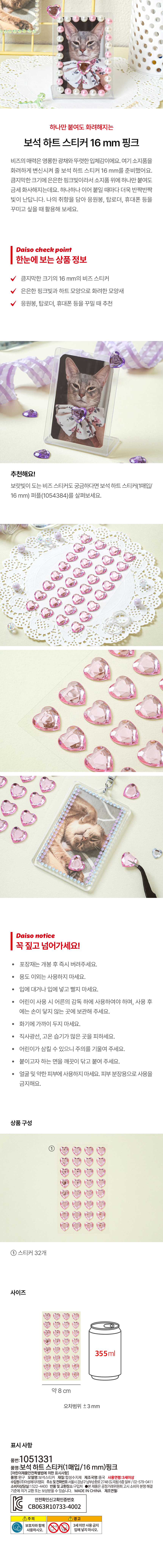 DAISO Gem heart sticker (1 sheet/16mm)Pink