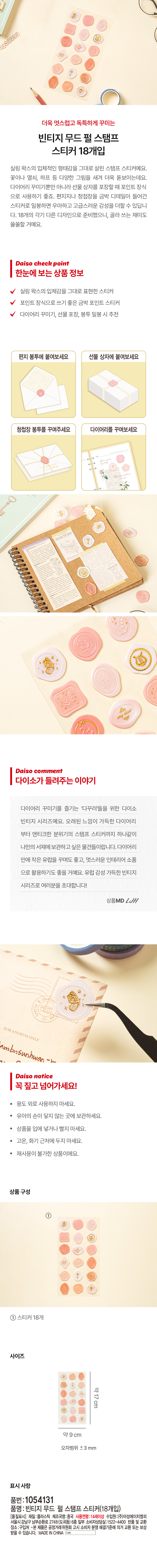 DAISO Vintage mood pearl stamp stickers (18 pcs)
