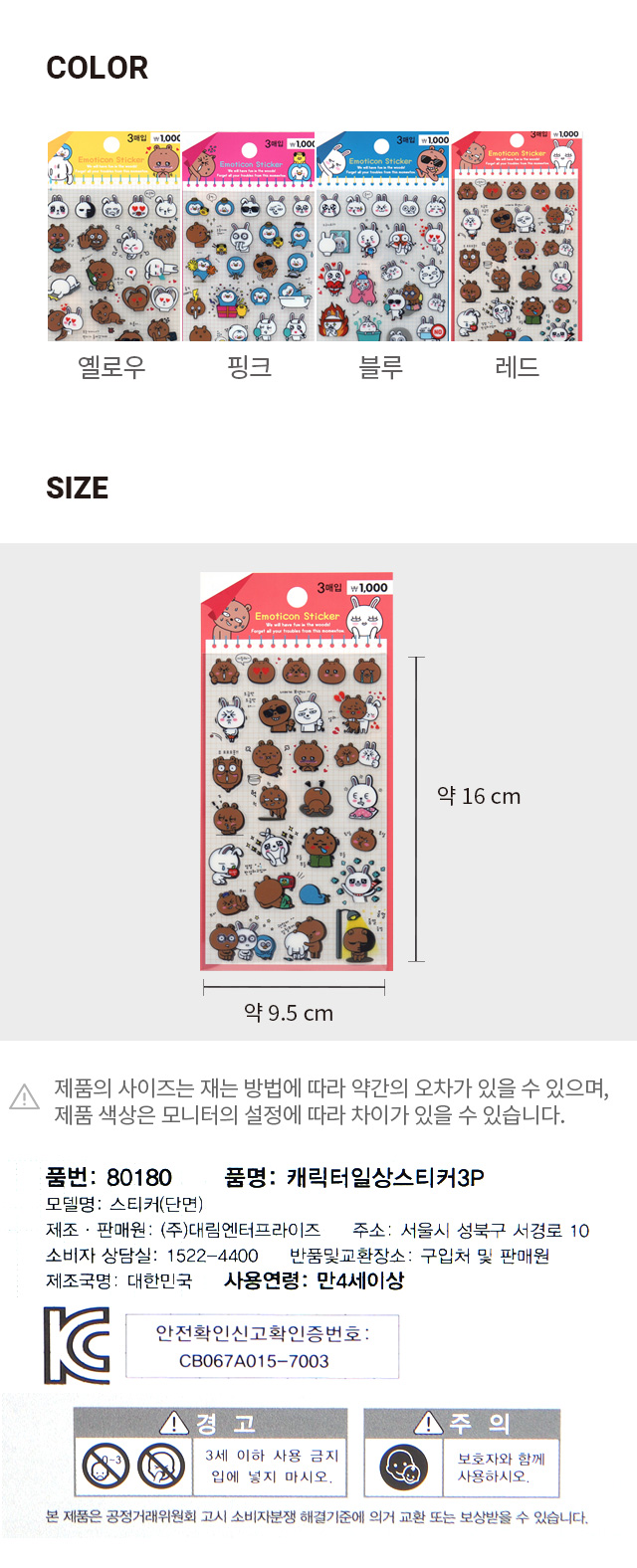 DAISO Character Daily Sticker 3P