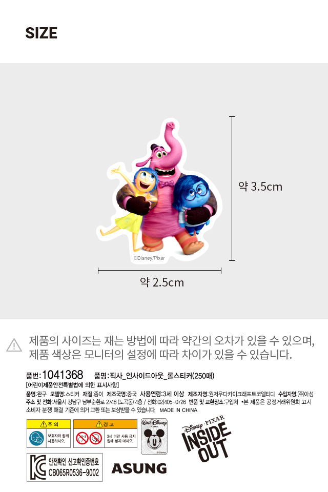 DAISO Pixar_Inside Out_Roll Sticker (250 sheets)
