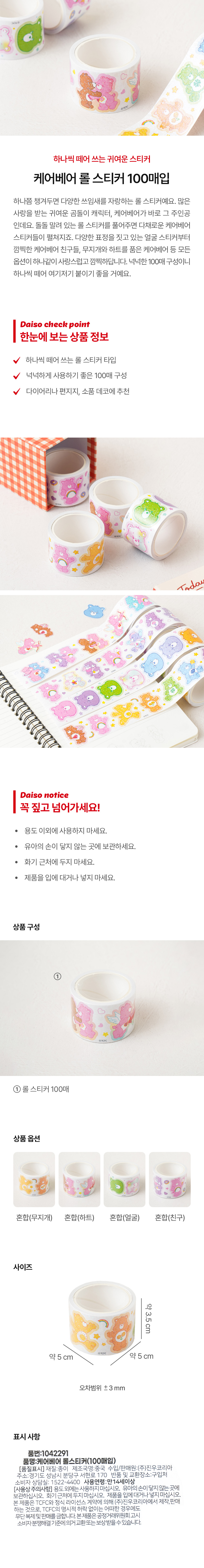 DAISO Care Bear Roll Sticker (100 sheets)