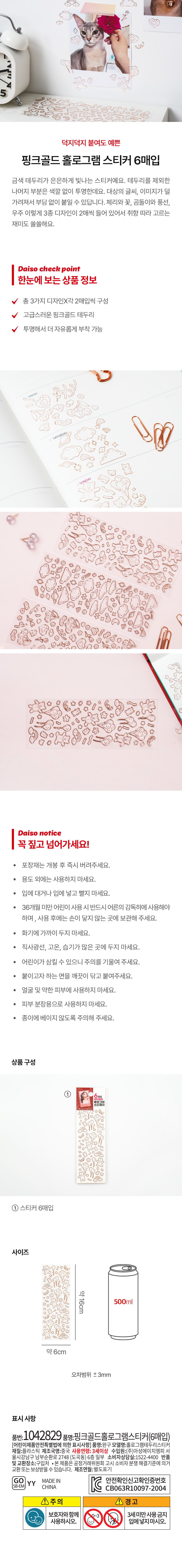 DAISO Pink Gold Hologram Stickers (6 sheets)