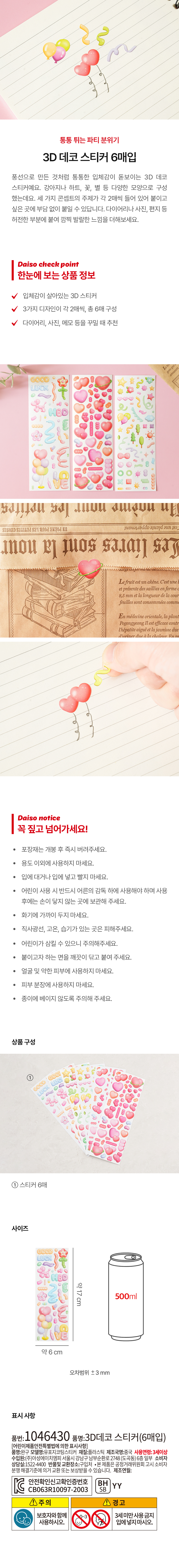 DAISO 3D Deco Sticker (6 sheets)