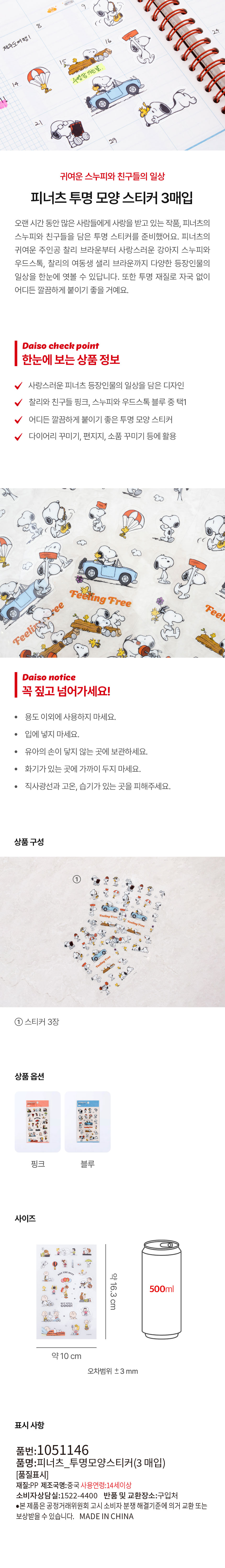 DAISO Peanuts_Transparent Shape Sticker (3 sheets)