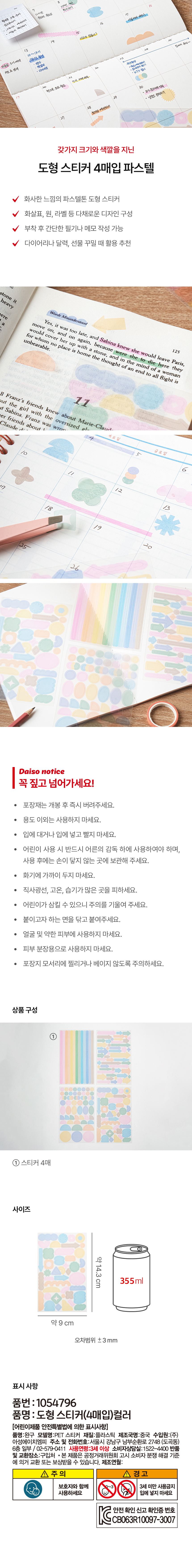 DAISO Shape stickers (4 sheets)Color