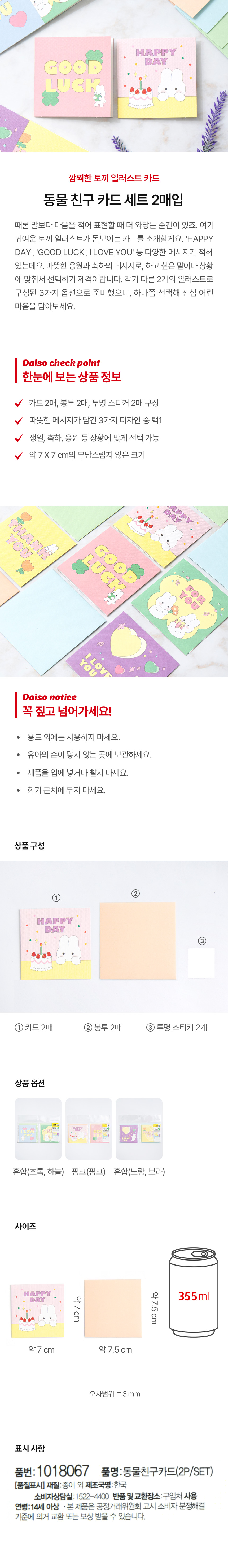 DAISO Animal Friend Card (2 pcs) 500