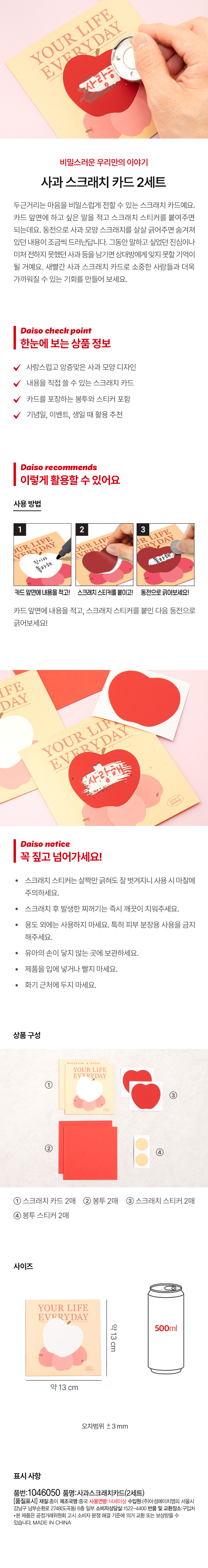 DAISO Apple Scratch Card (2Set)