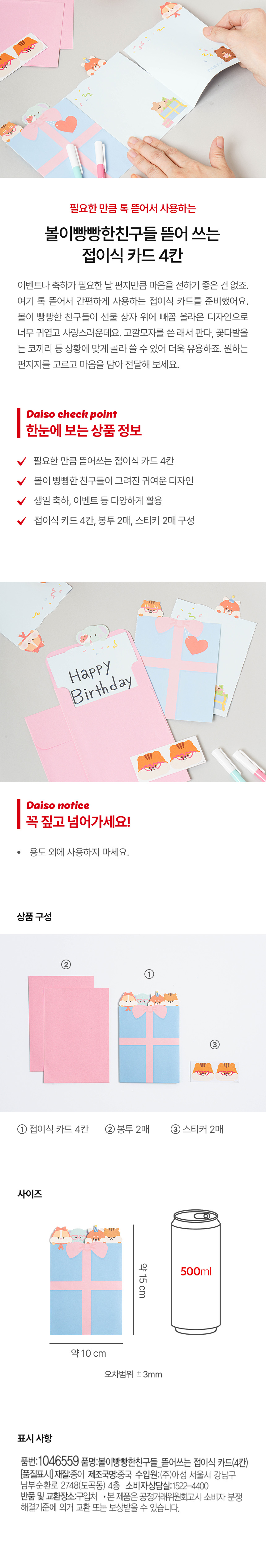 DAISO Chubby Buddy_Foldable tear-off card (4 sections)