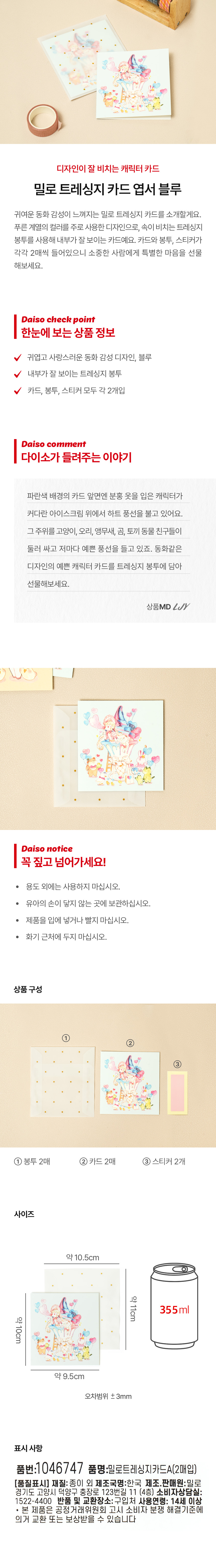 DAISO Milo tracing paper card A (2 sheets)