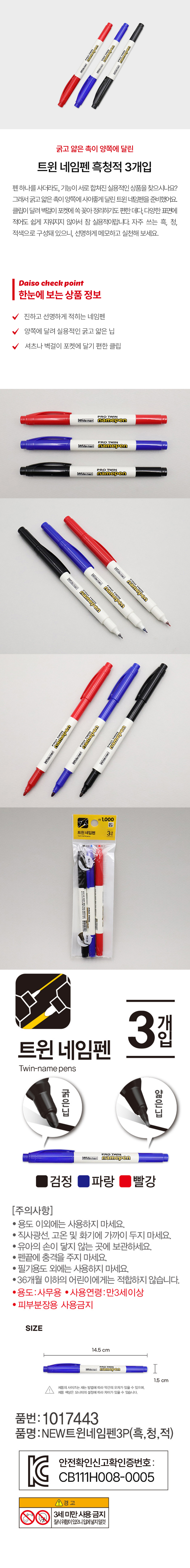 DAISO NEW Twin Name Pen 3P (Black, Blue, Red)