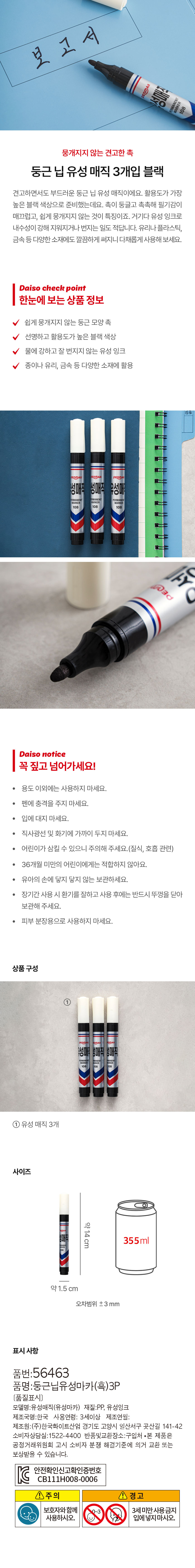 DAISO Round nib marker (black) 3P