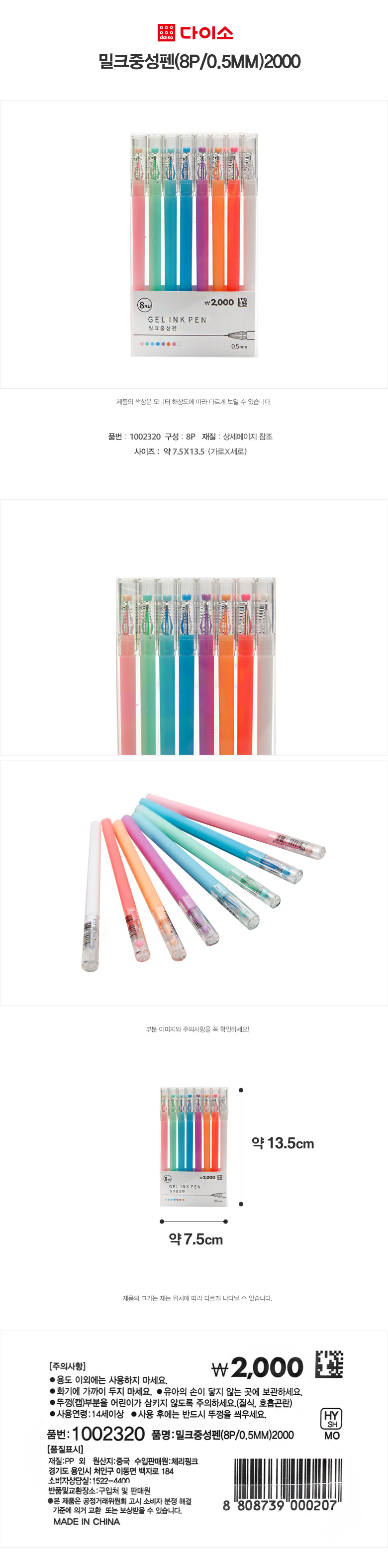 DAISO Milk Neutral Pen (8P/0.5mm)