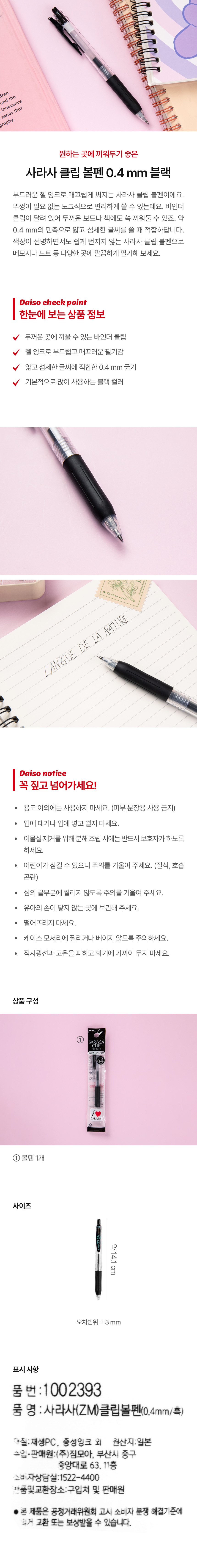 DAISO Sarasa (ZM) Clip Ballpoint Pen (0.4mm/Black)