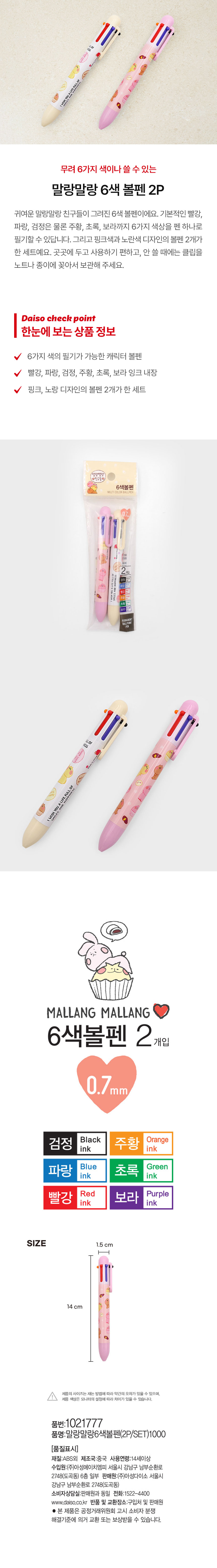 DAISO Soft 6-color ballpoint pen (2P/SET)